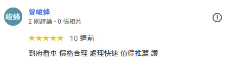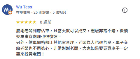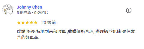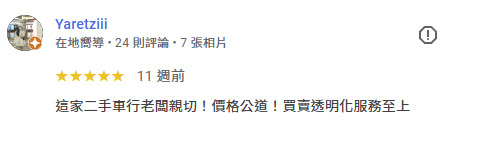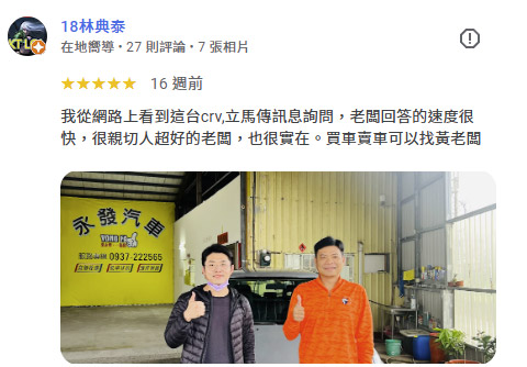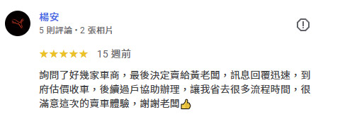 關於永發汽車 20年專業,給您最誠實的價格 永發汽車擁有20年以上的二手車買賣經驗,秉持在地經營、誠信為本的理念,陪伴無數車主順利成交,廣受好評。我們了解每一位客戶對愛車的重視,因此堅持透明估價、合理價格、不砍價,讓每一筆交易都公開、公平、值得信賴。無論您是想賣車、換車,或是手上還有貸款、違規未處理,我們都能提供一條龍專業服務,從估價、過戶到清償,協助您快速完成,免除繁瑣手續與不安。選擇永發,等於選擇一個沒有中間商抽成、全程專人服務、現金交易有保障的估車平台。從線上估價到到府收購,我們只用行動證明一句話:👉 價格不只是數字,更是誠意的體現。 LINE免費估車 0937-222-565 網友五星好評 不只好運到!還幫你多估好幾萬! 真實車主一致推薦的賣車平台,不只價格透明、流程快速,還有專人服務協助成交。免跑車行、免擔心壓價,全流程一對一專人協助,讓你安心成交、現金到手。 LINE免費估車 電話 0937-222-565 4 大承諾 比市價更優的收購條件我們不砍價、不壓價,專業估價系統給您合理、甚至更高的行情。 現金到府收購,快速成交沒煩惱專人到府收車,現金交易當場完成,省時又安心。 便利快速|免出門,線上估價超省事透過我們LINE,直接上傳照片即可快速評估車價,不必舟車勞頓、見面議價,讓您在家就能完成賣車流程。 流程透明|合約簽訂,全程清楚可追溯每一步都建立在雙方共識下簽約進行,明確約定成交金額與過戶時間,確保權責對等,保障您每一分權益。 車主真心推薦 LINE免費估車 電話 0937-222-565 最新成交紀錄 查看更多評價 LINE免費估車 電話 0937-222-565 24 小時線上專人服務,10 分鐘內完成估價並可立即現金成交。提供完整定型化契約,全程保障交易安全。若有貸款問題,也可協助當日清償過戶,免除您的後顧之憂。 永發地址:358苗栗縣苑裡鎮西勢里西勢74之8號 聯繫電話:0937-222-565 加LINE聯絡